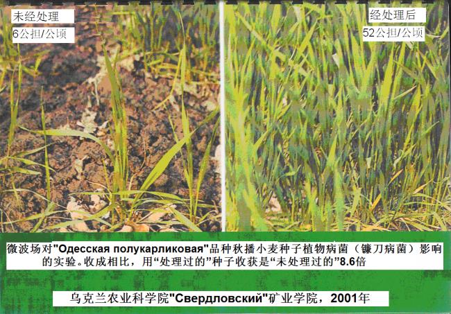 本期介绍乌克兰国敖德萨市“风暴”科研所,在乌克兰国际科学院南方分院院长弗.拉.图奇诺姆的指导下,研制出种子微波场处理设备,经多次改进,并定型为“Микростим-2”型。并用10年时间,微波处理了全国各有关农业部门的各种农业种子,在各地进行播种实验,都取得丰碩的正面成果。于2004年底,通过了国家组织的权威部门鉴定。本期介绍经肯定的“种子微波加工效果对比图册”[1]内容。